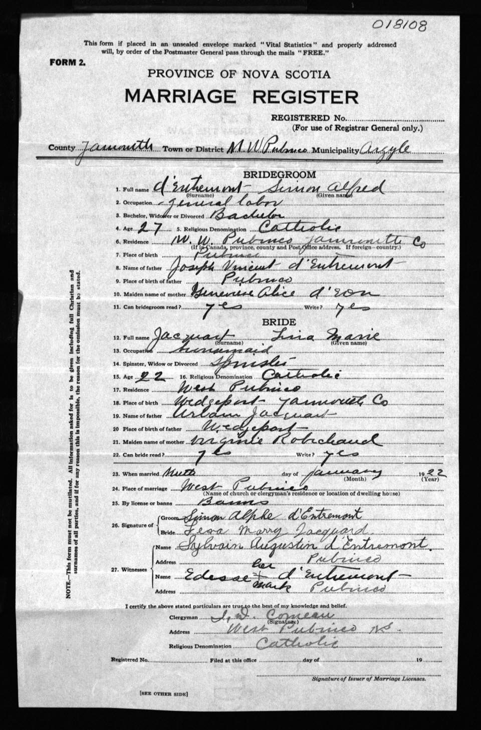 Registration: Year: 1922 number: 18108