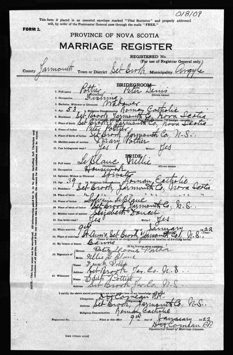 Registration: Year: 1922 number: 18109