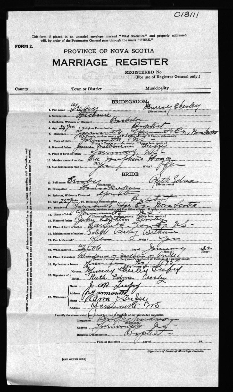 Registration: Year: 1922 number: 18111
