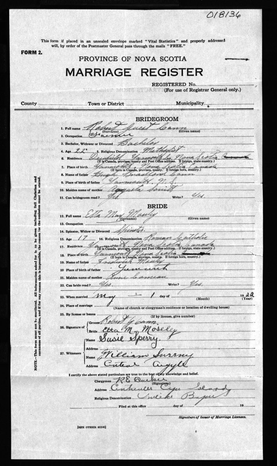 Registration: Year: 1922 number: 18136