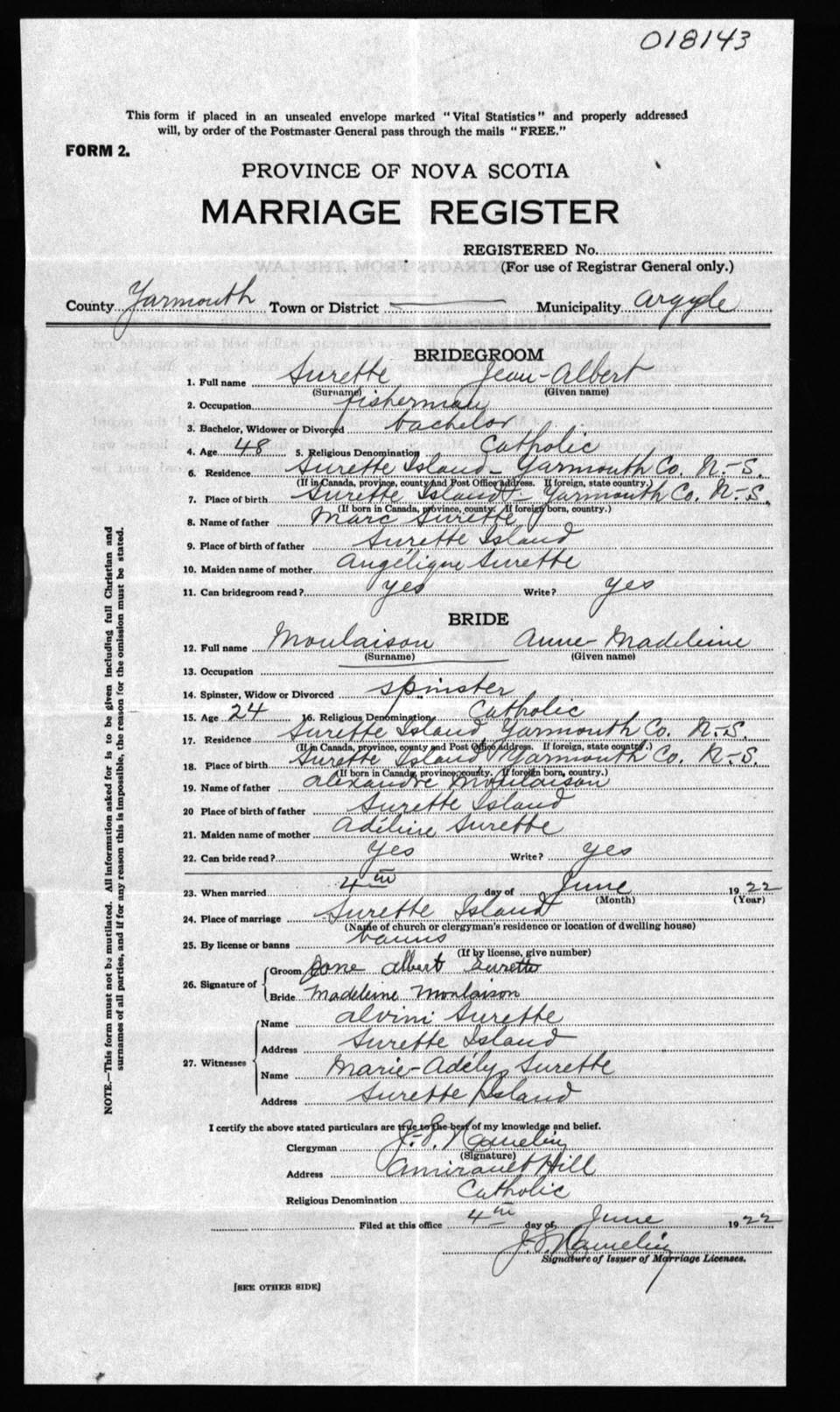 Registration: Year: 1922 number: 18143