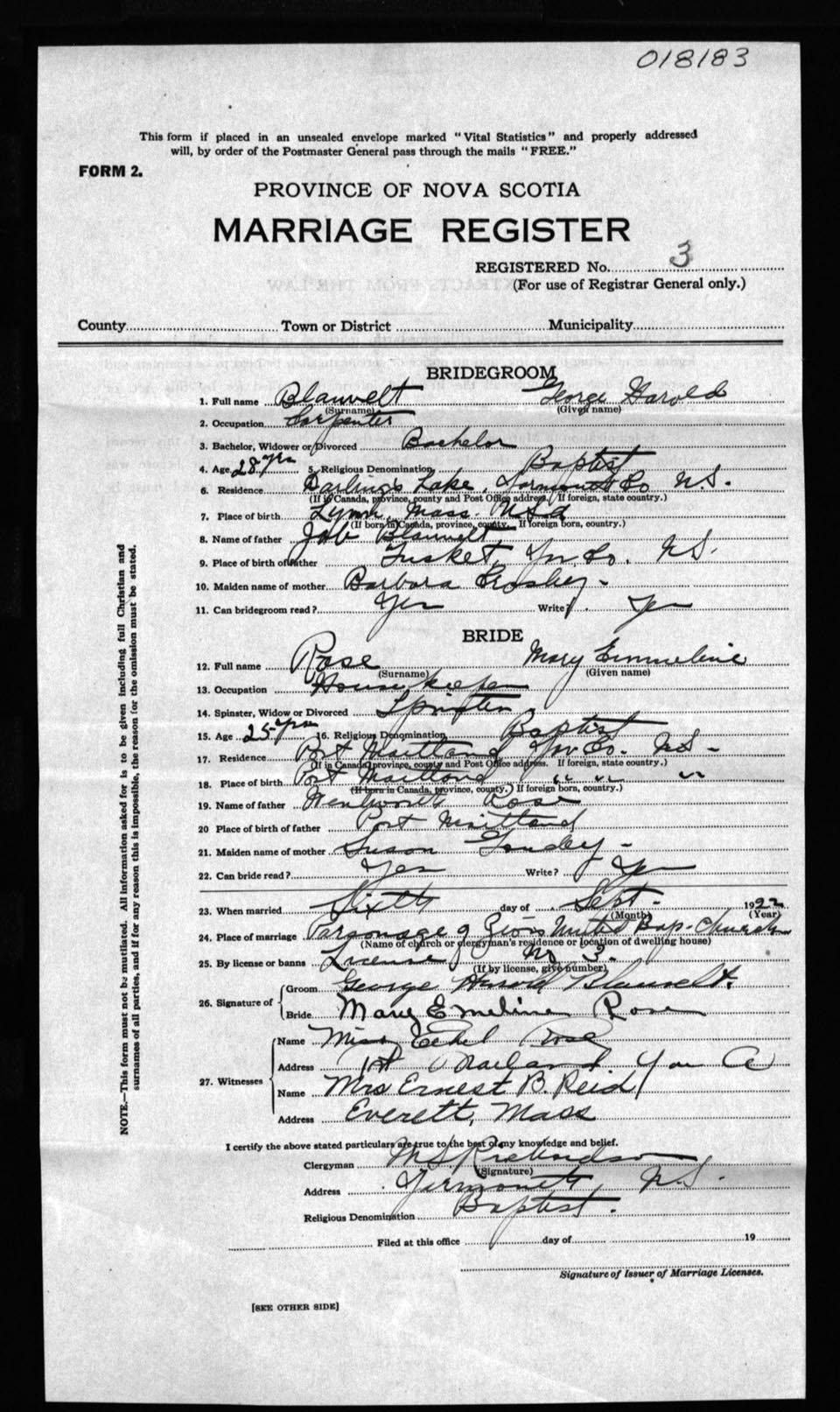 Registration: Year: 1922 number: 18183