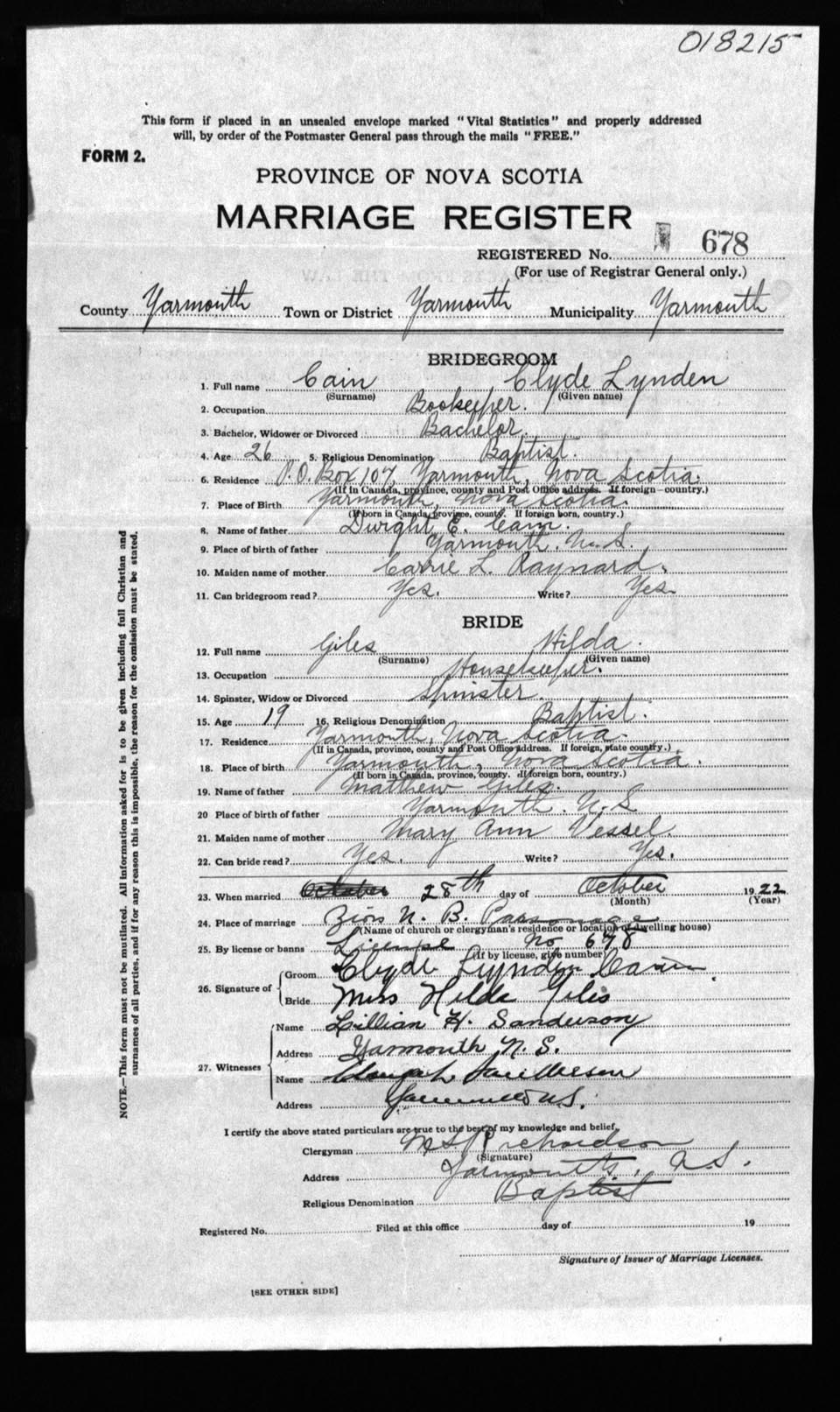 Registration: Year: 1922 number: 18215