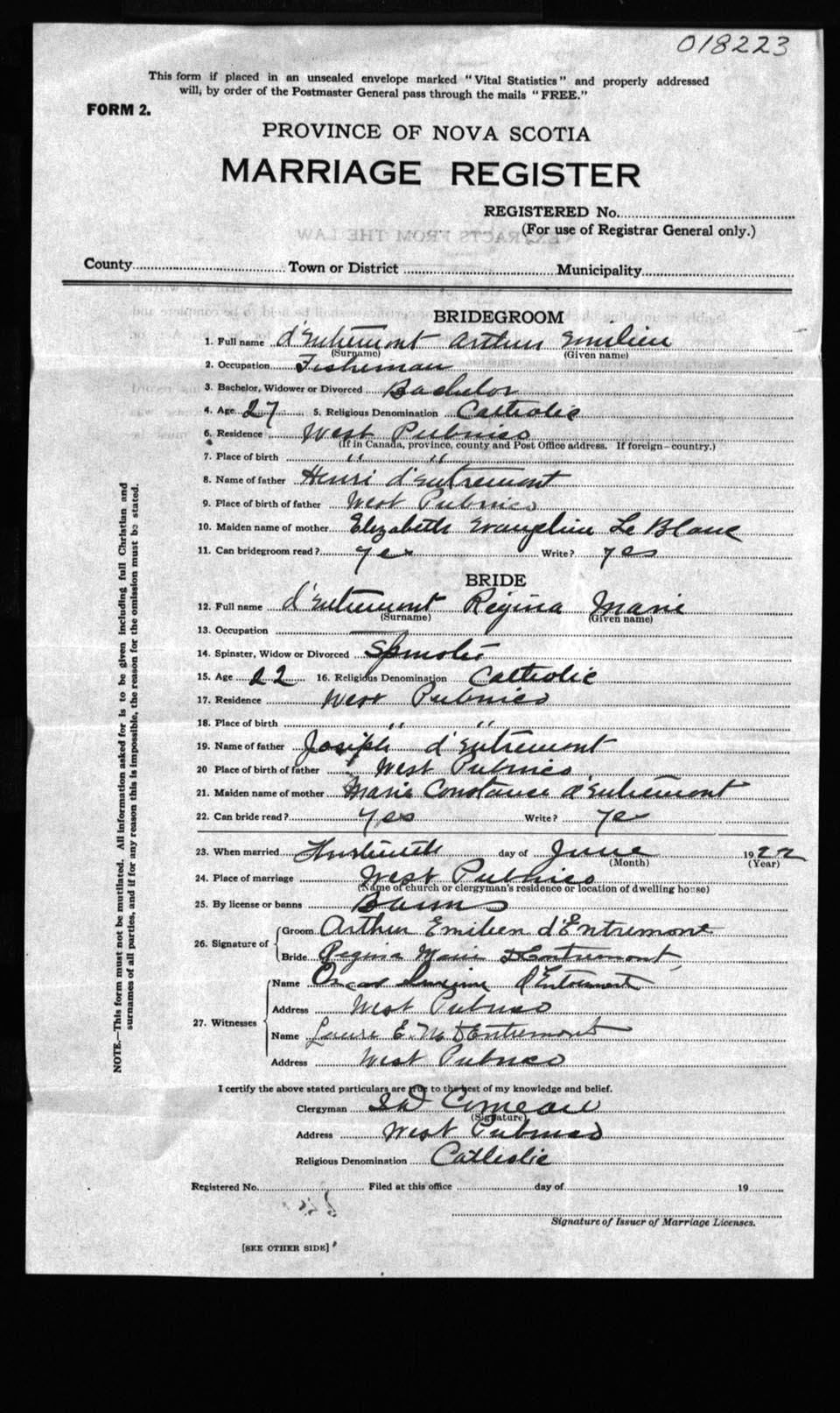 Registration: Year: 1922 number: 18223