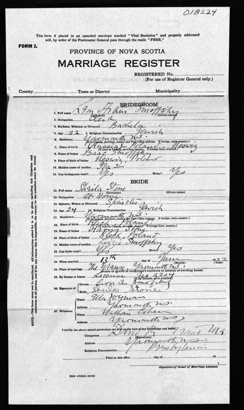 Registration: Year: 1922 number: 18224