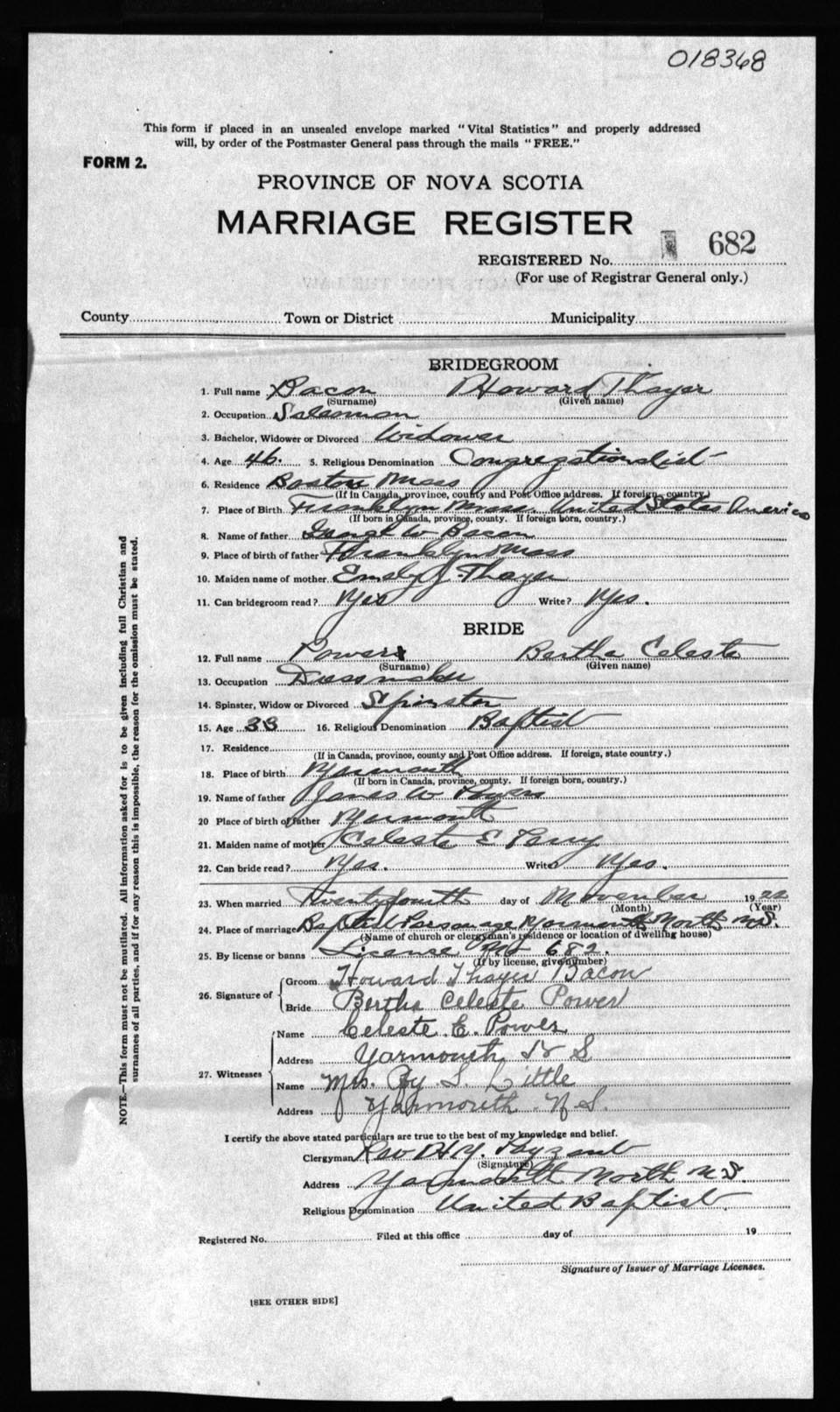 Registration: Year: 1922 number: 18368