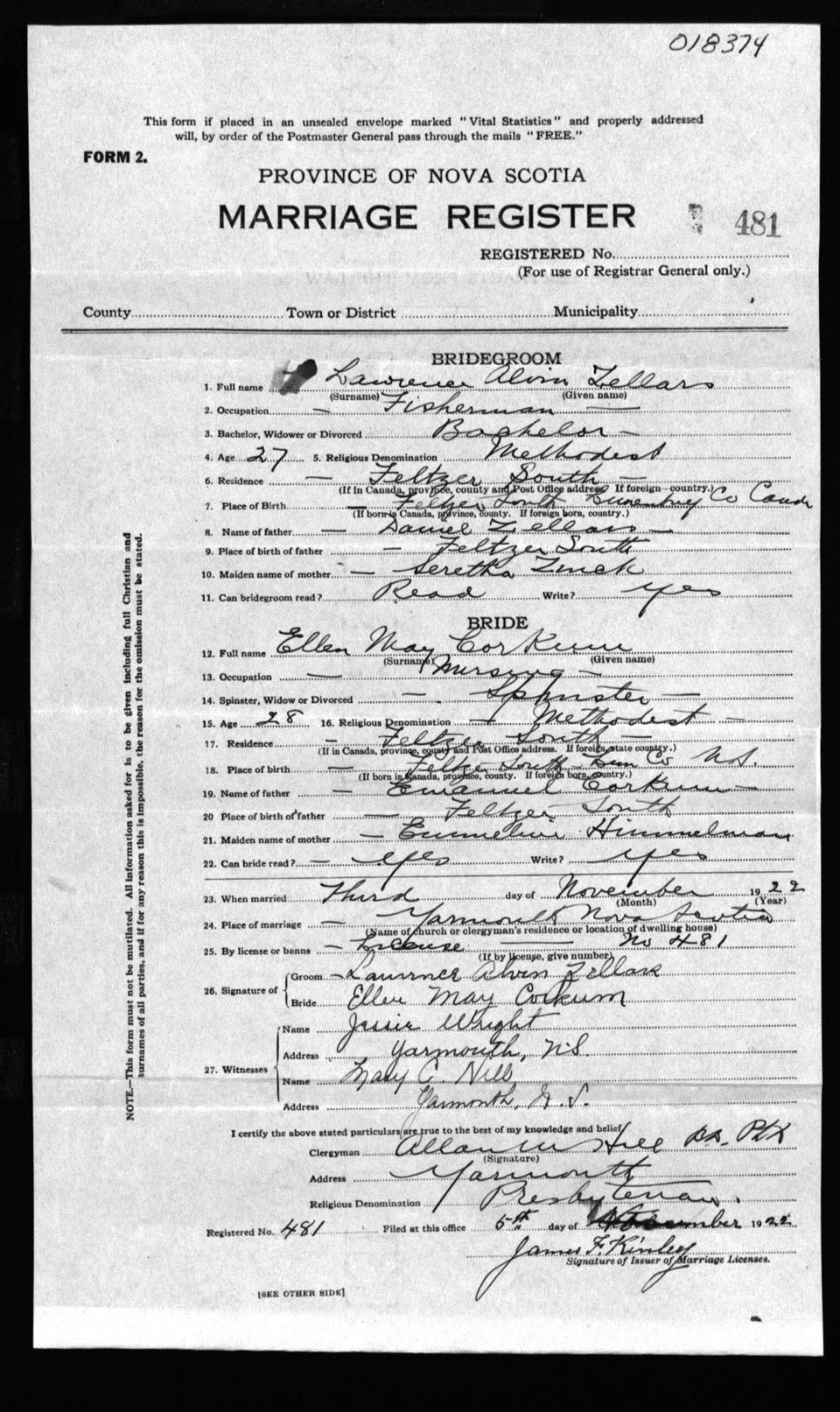 Registration: Year: 1922 number: 18374