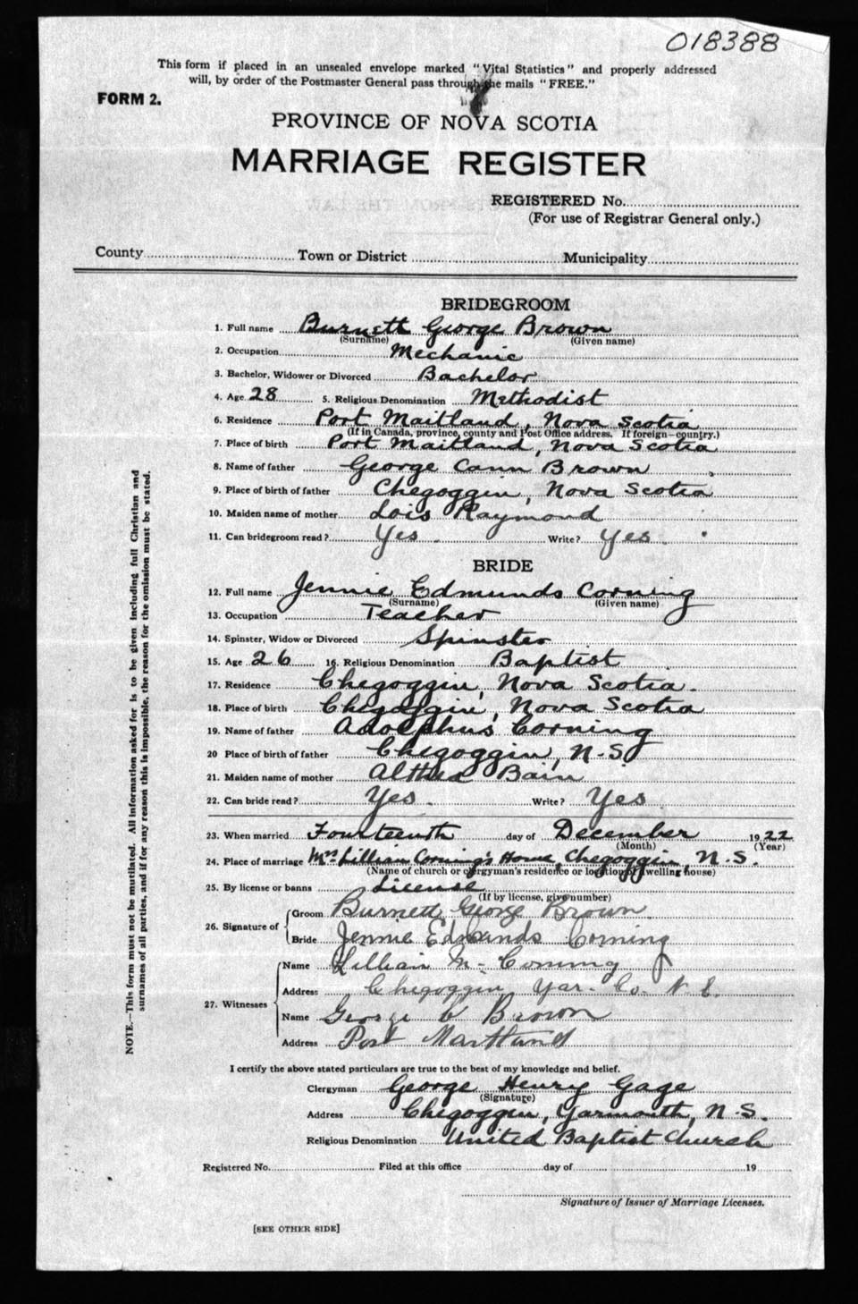 Registration: Year: 1922 number: 18388