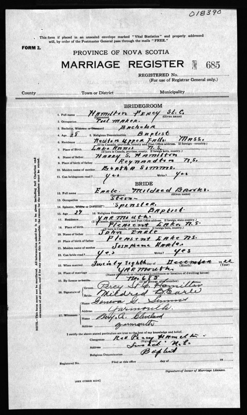 Registration: Year: 1922 number: 18390