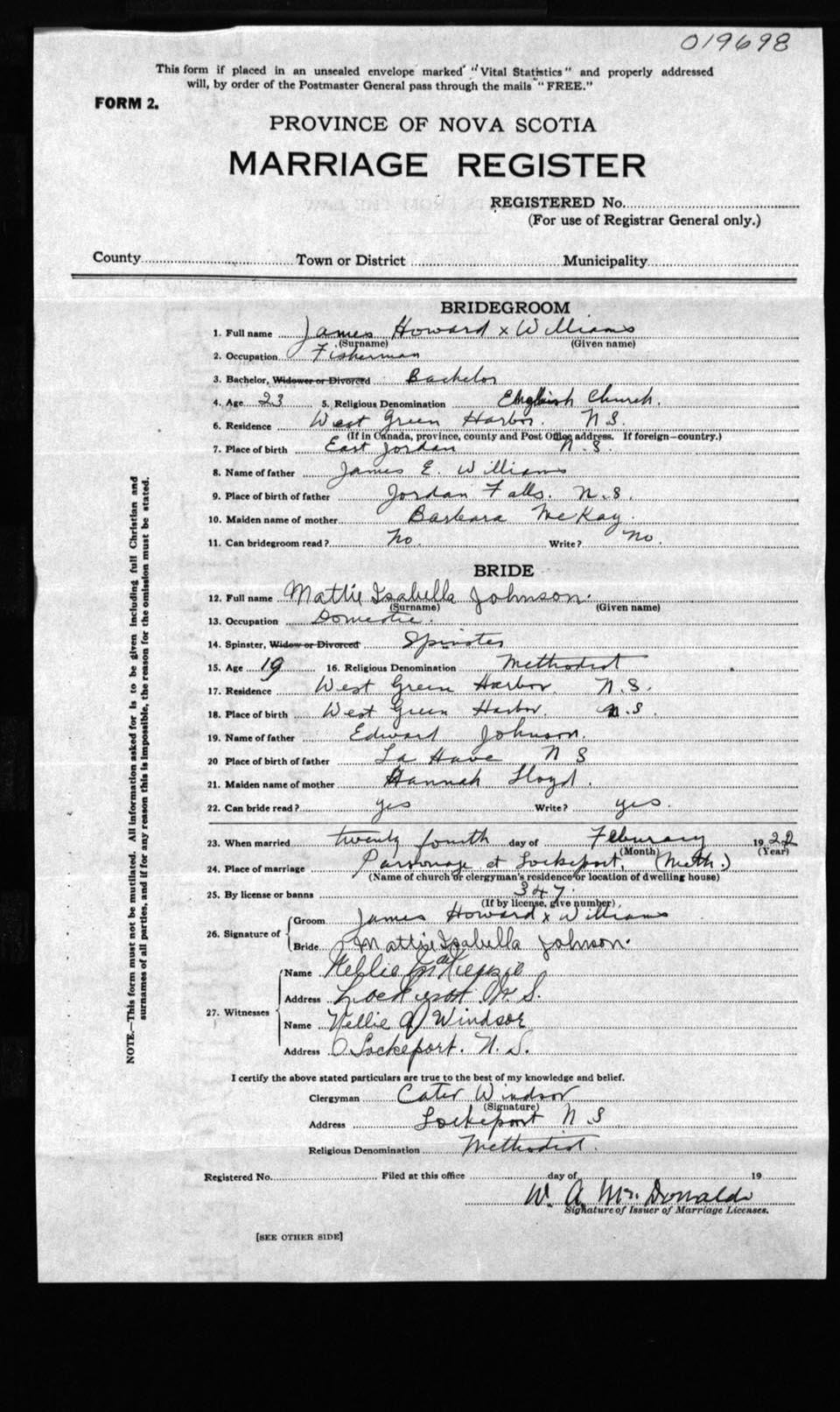 Registration: Year: 1922 number: 19698