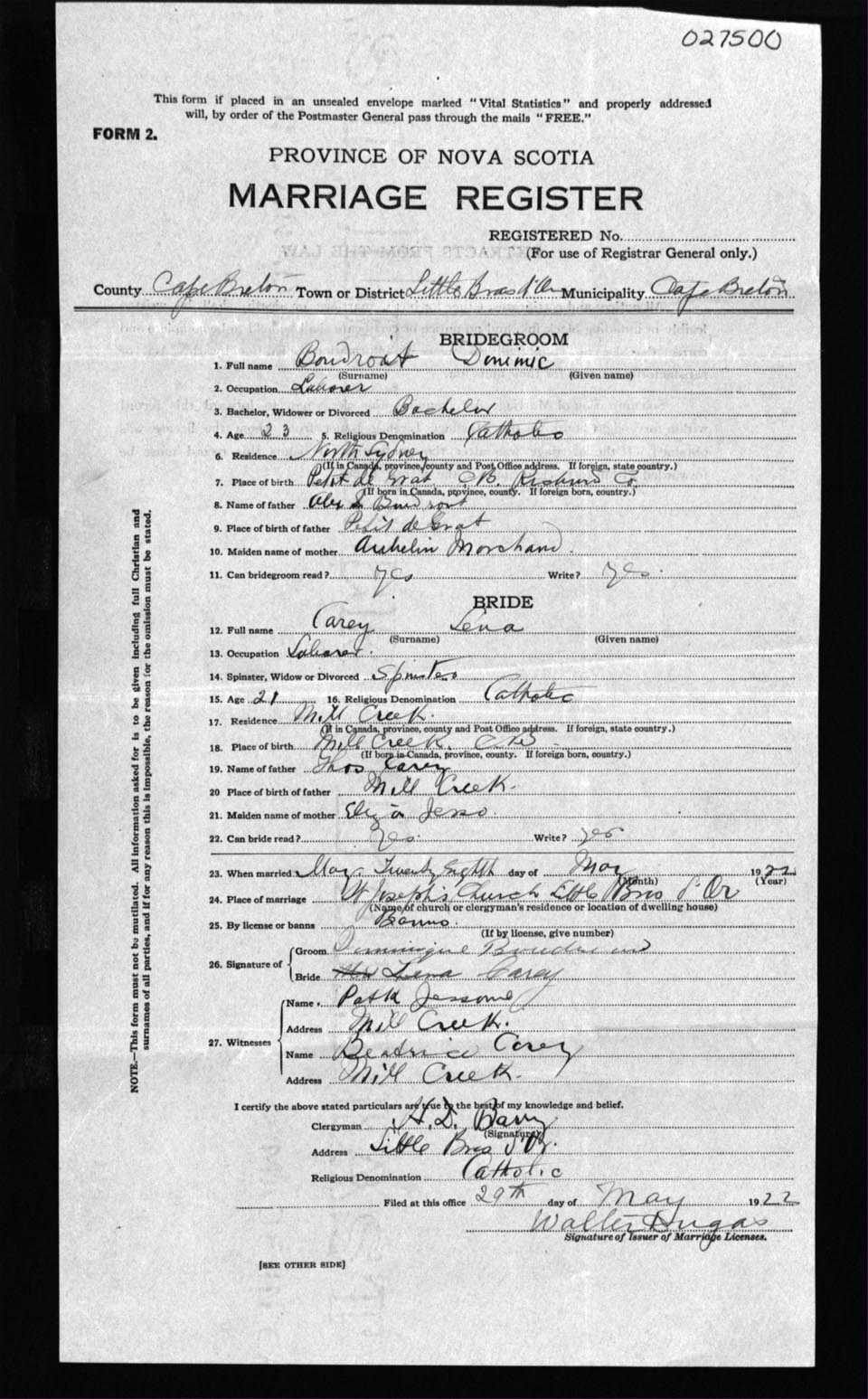 Registration: Year: 1922 number: 27500