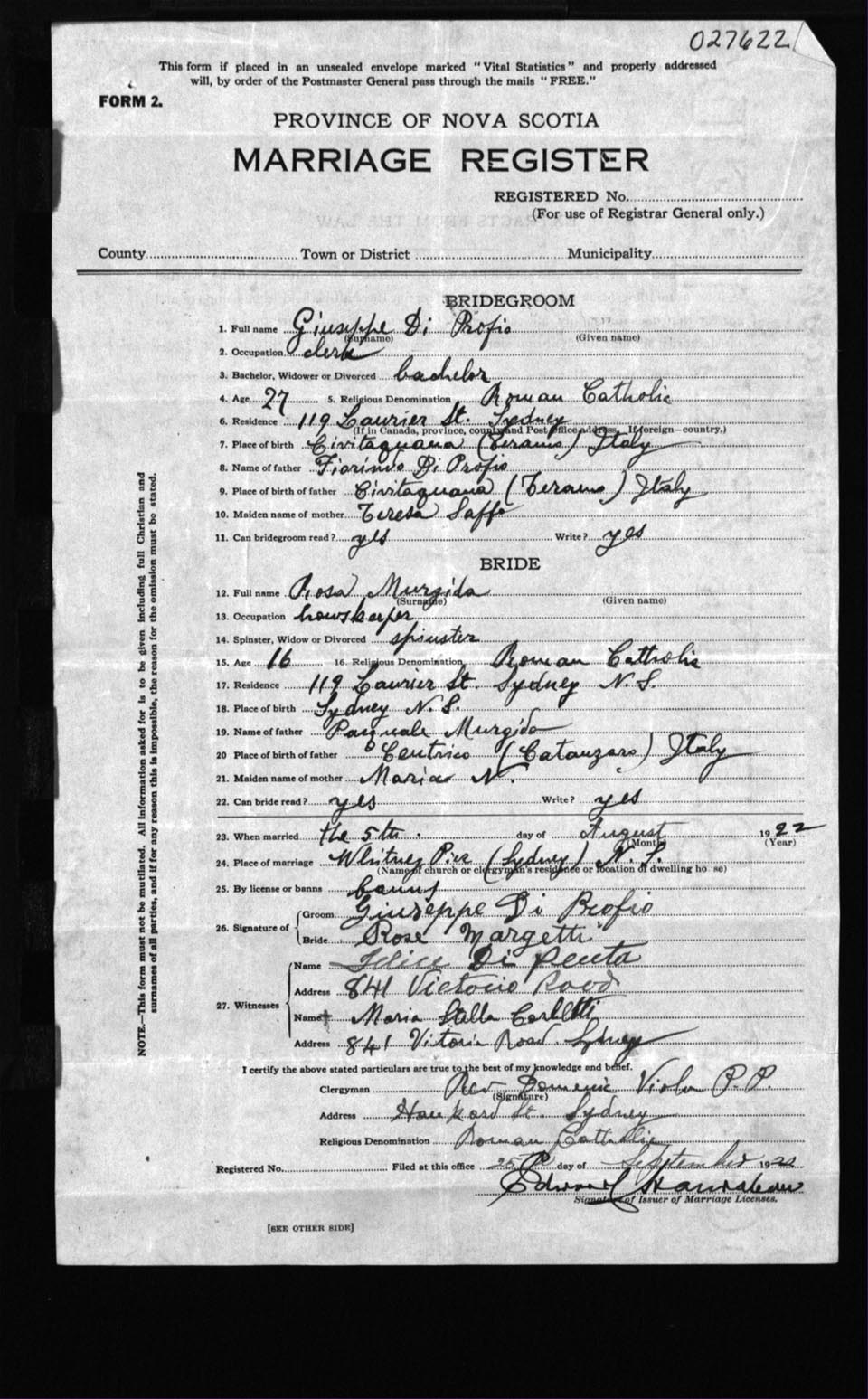Registration: Year: 1922 number: 27622
