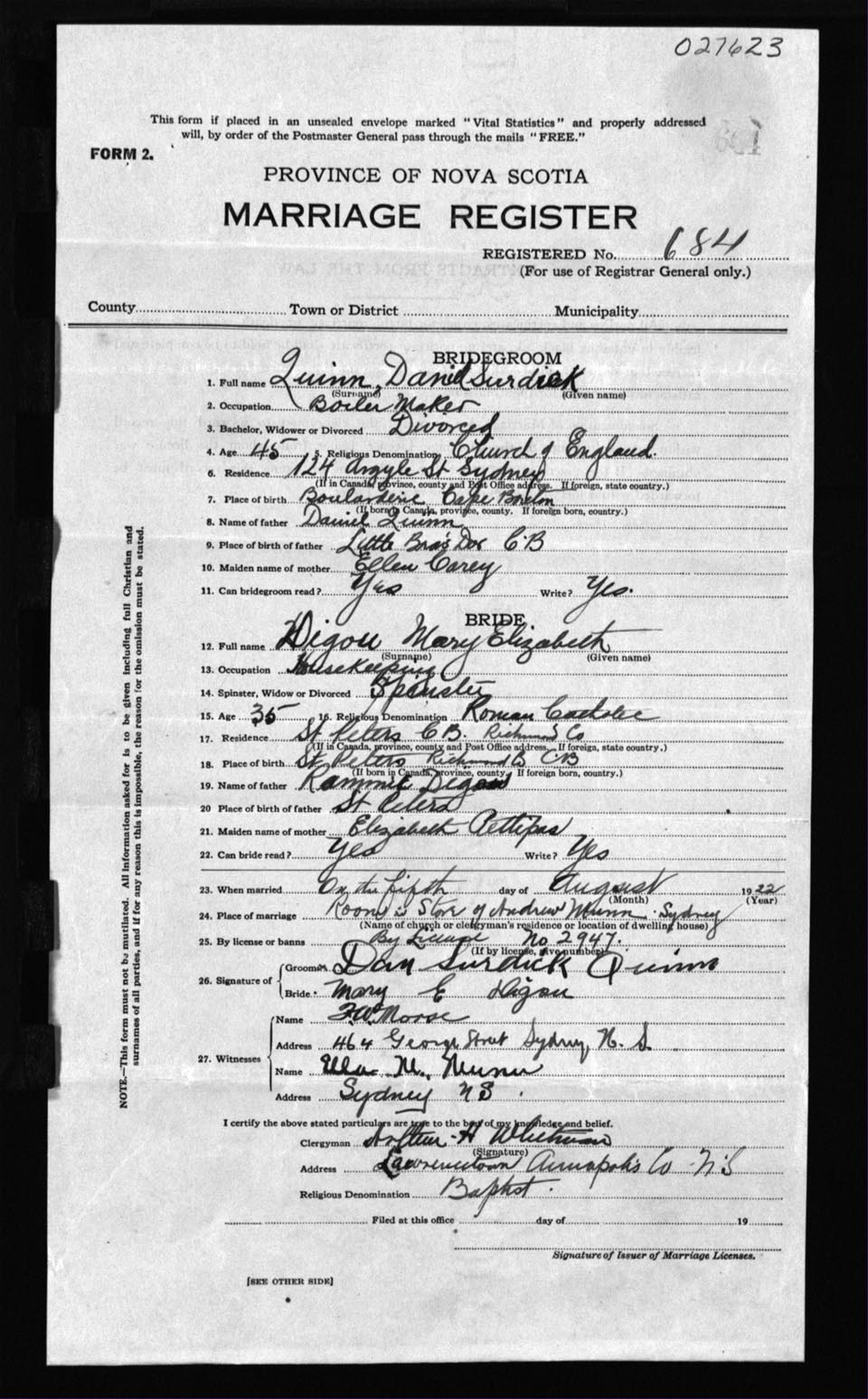Registration: Year: 1922 number: 27623