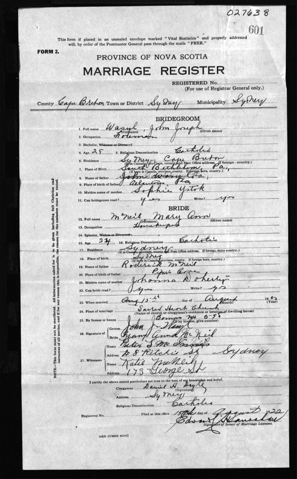 Registration: Year: 1922 number: 27638
