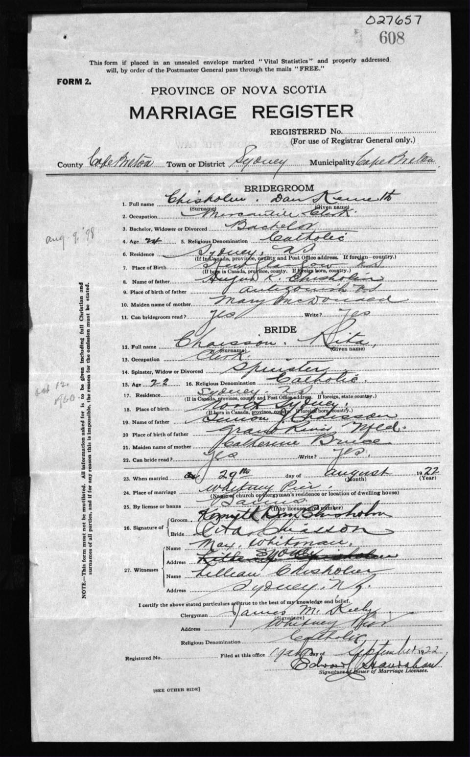 Registration: Year: 1922 number: 27657