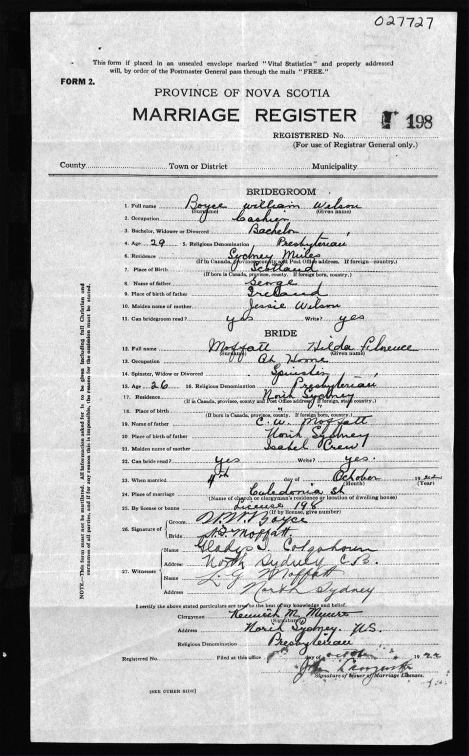 Registration: Year: 1922 number: 27727