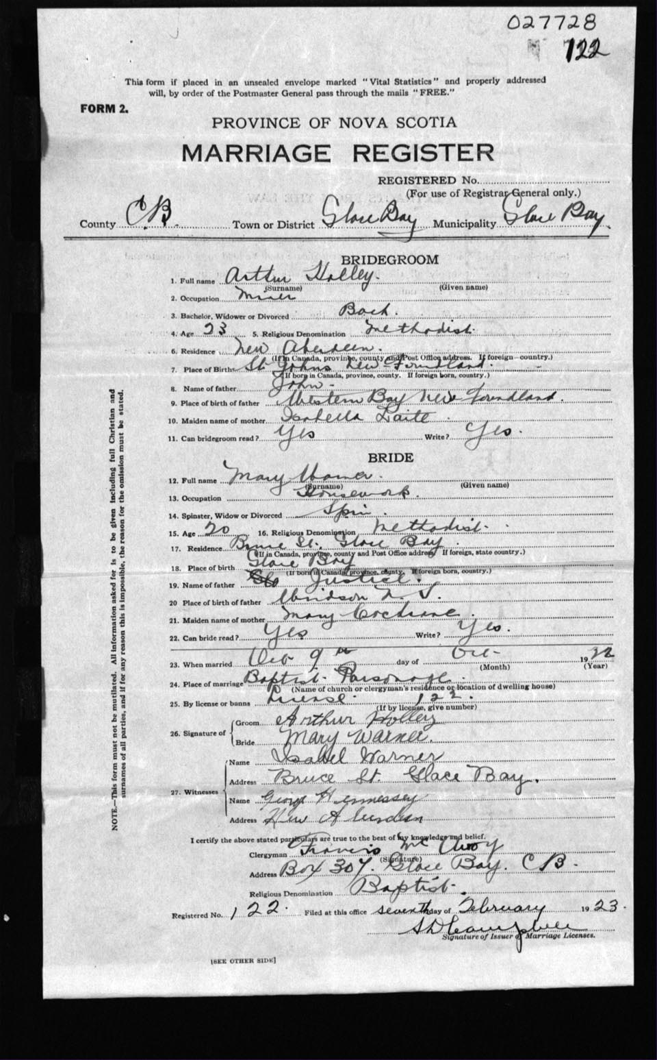 Registration: Year: 1922 number: 27728