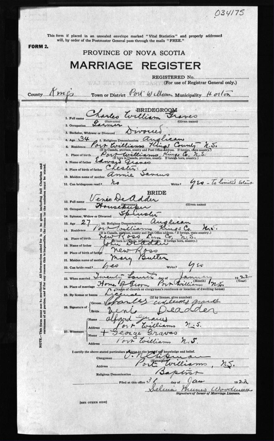 Registration: Year: 1922 number: 34175