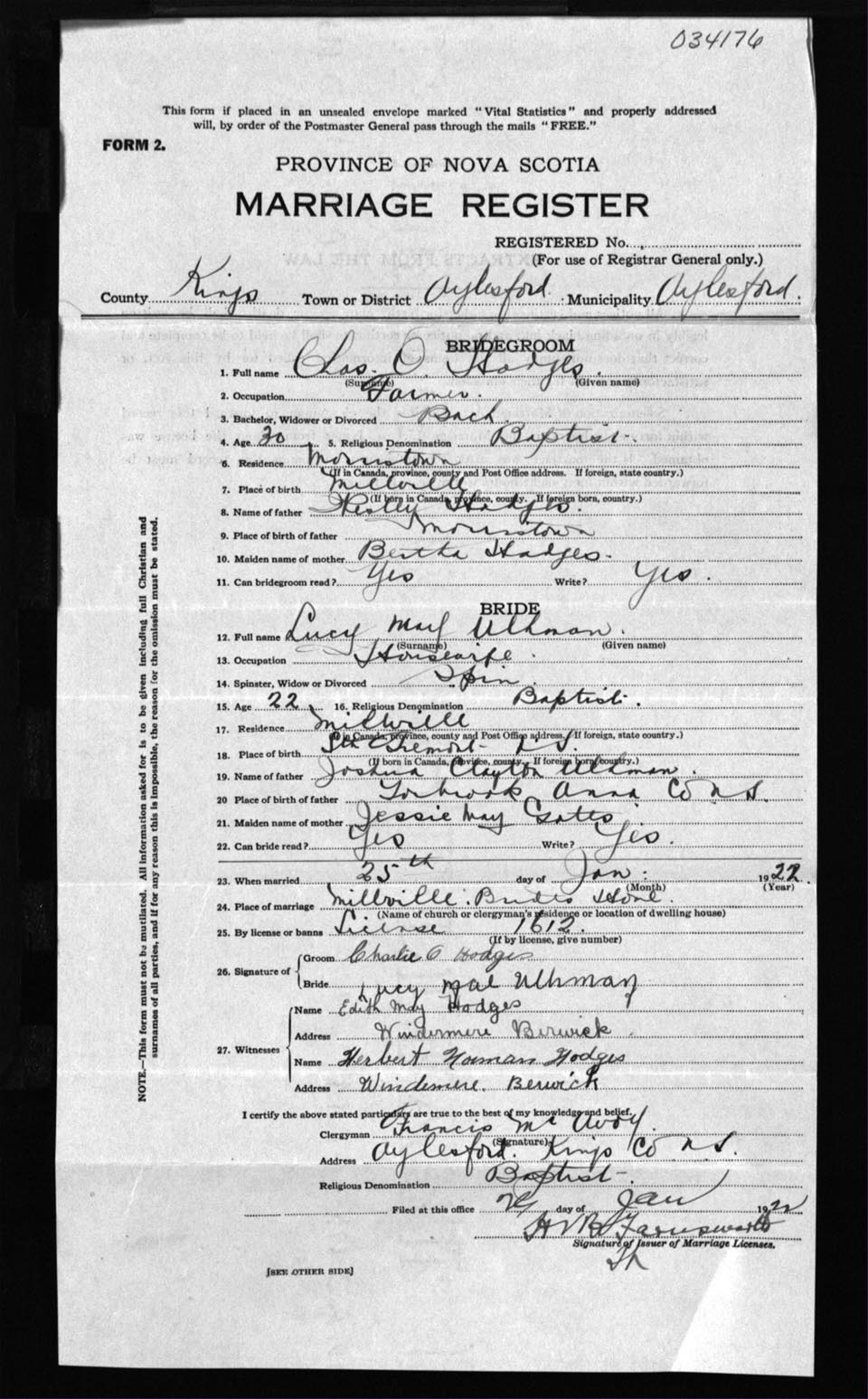 Registration: Year: 1922 number: 34176