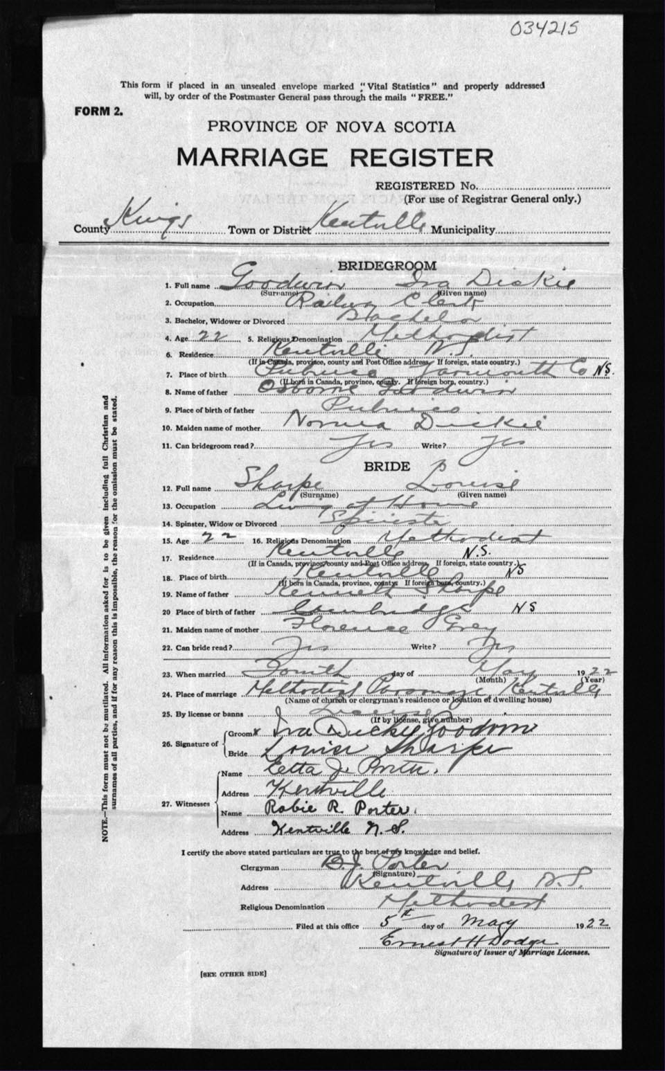 Registration: Year: 1922 number: 34215