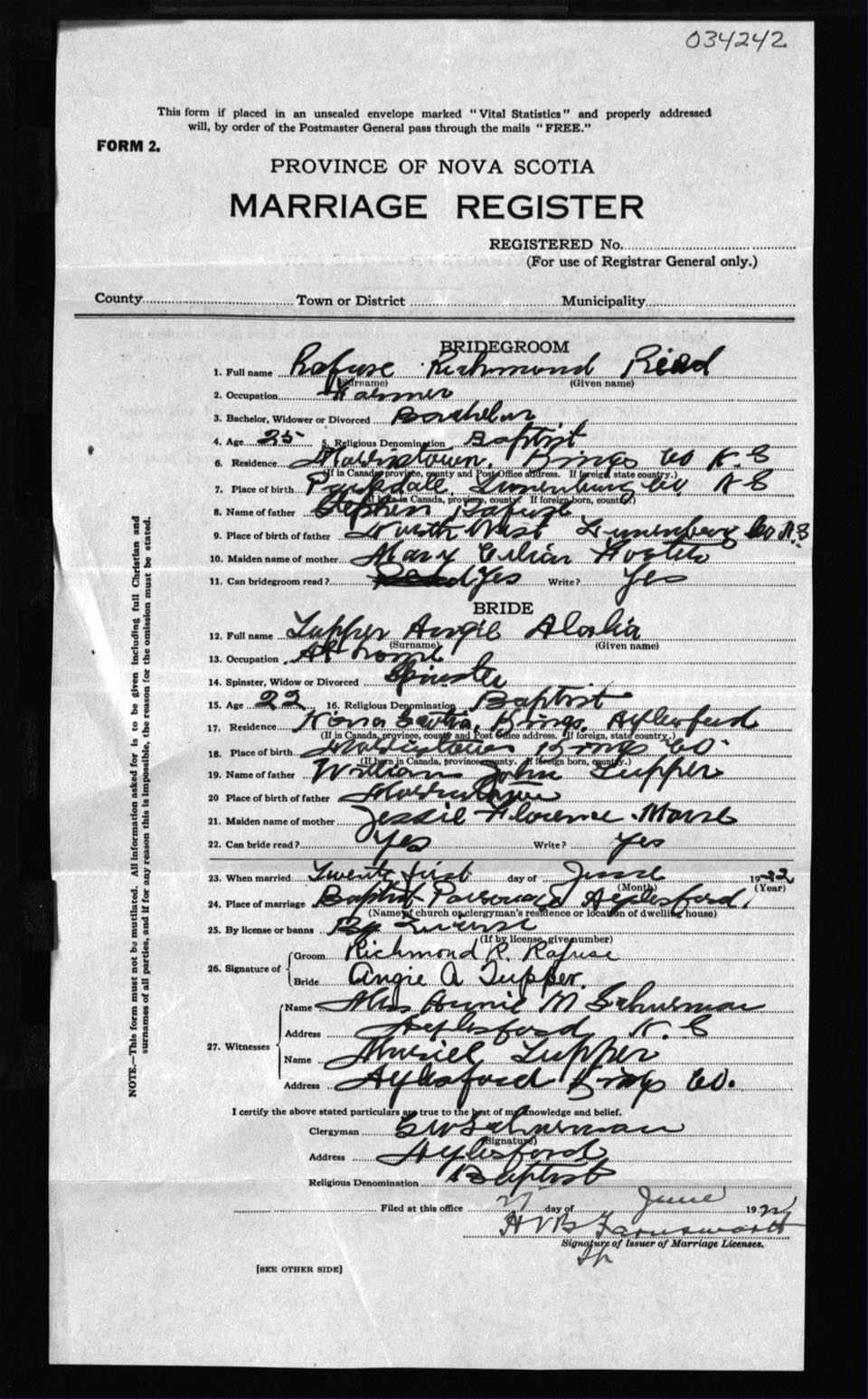 Registration: Year: 1922 number: 34242