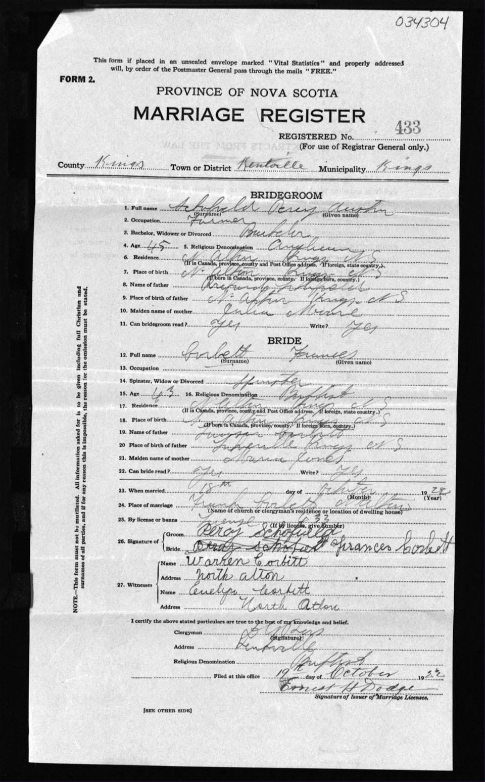 Registration: Year: 1922 number: 34304