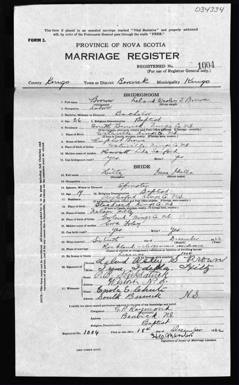 Registration: Year: 1922 number: 34334