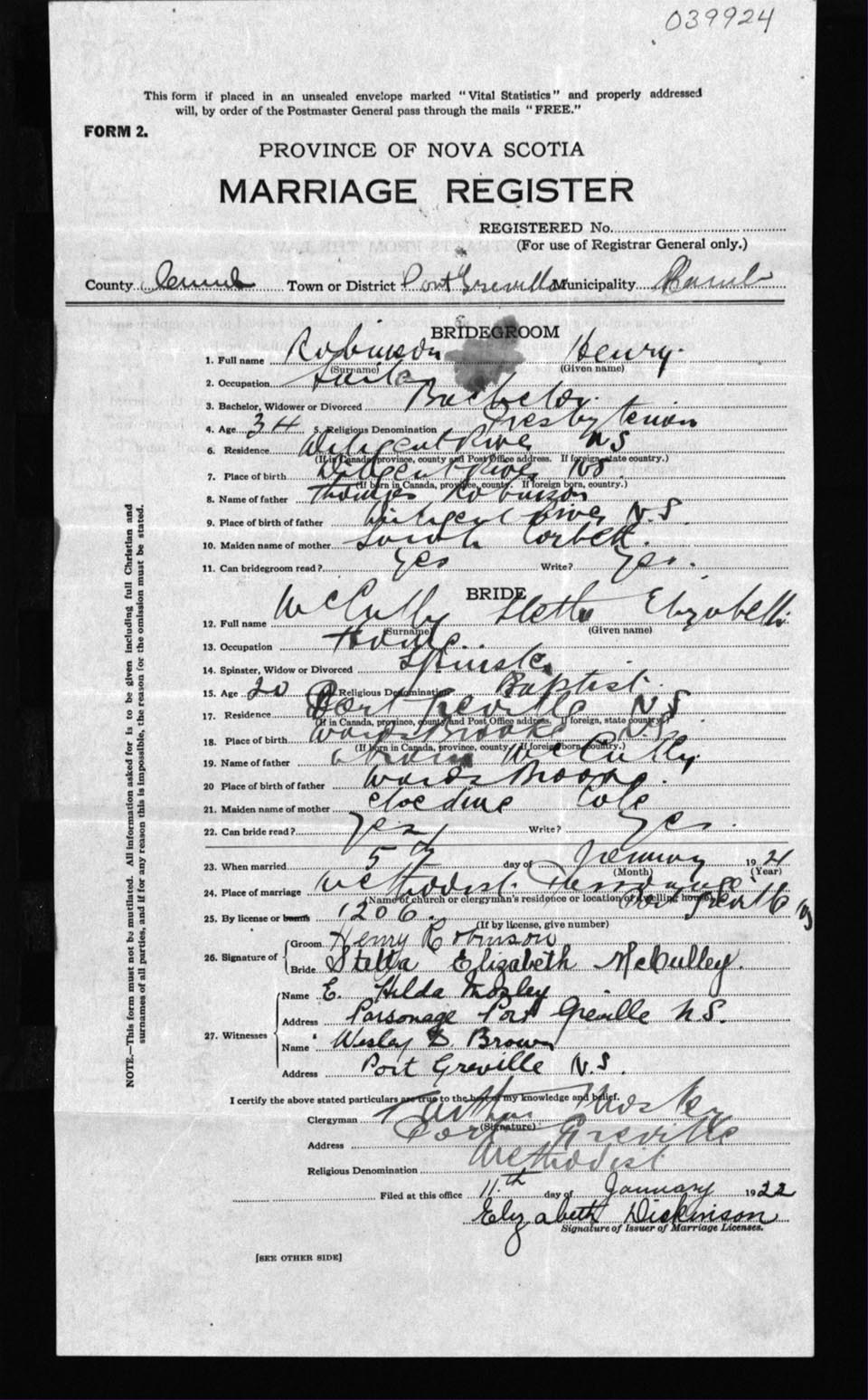 Registration: Year: 1922 number: 39924