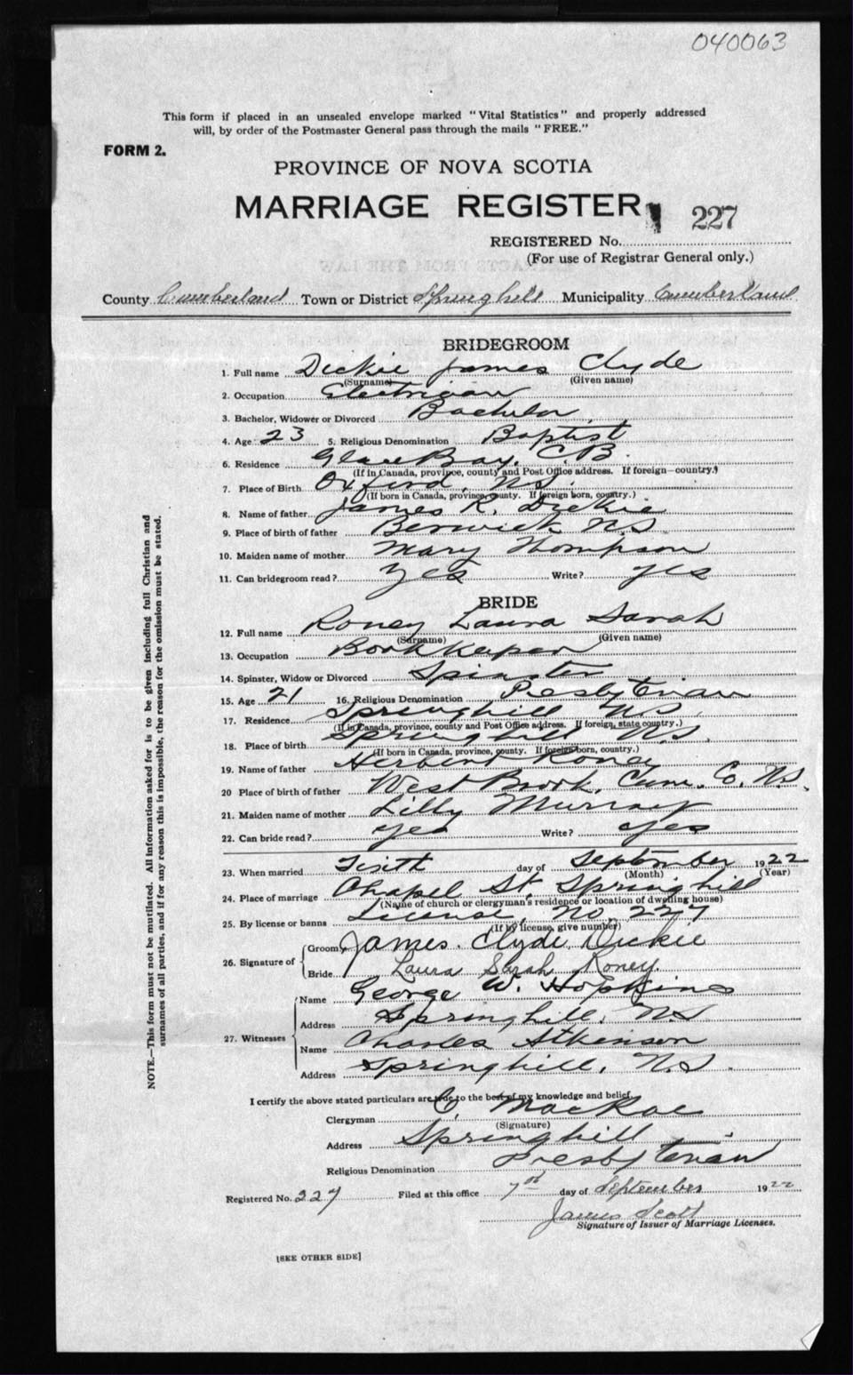 Registration: Year: 1922 number: 4063