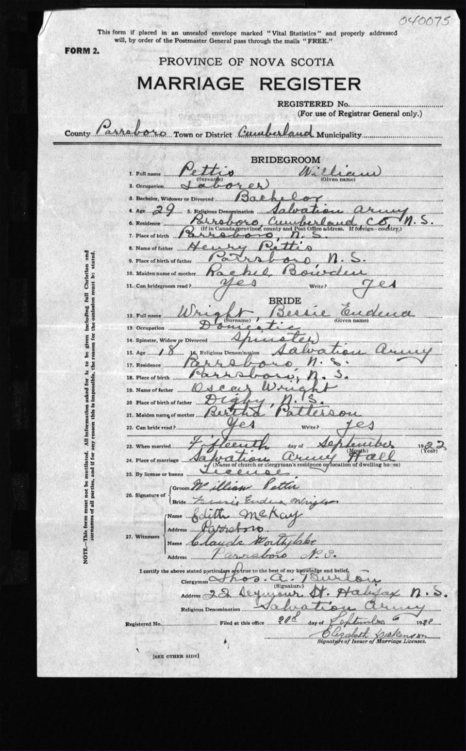Registration: Year: 1922 number: 4075