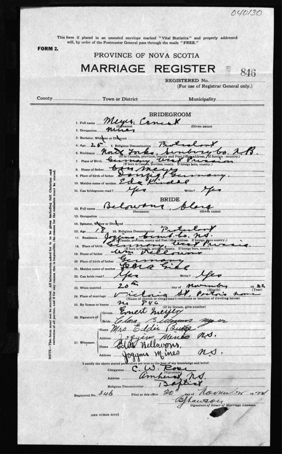Registration: Year: 1922 number: 40130