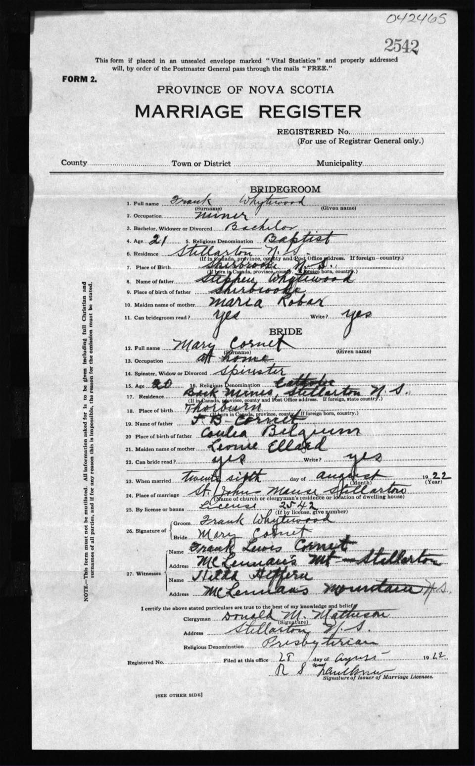 Registration: Year: 1922 number: 42465