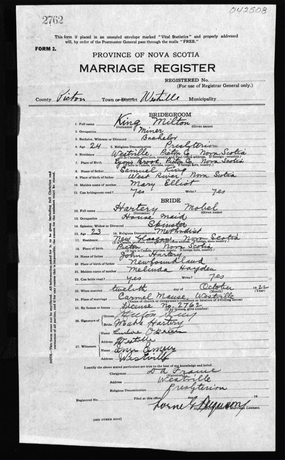 Registration: Year: 1922 number: 42508