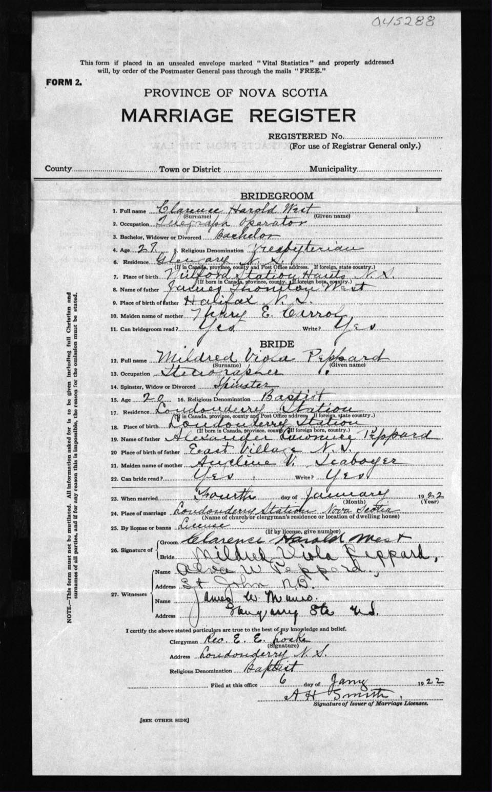 Registration: Year: 1922 number: 45288