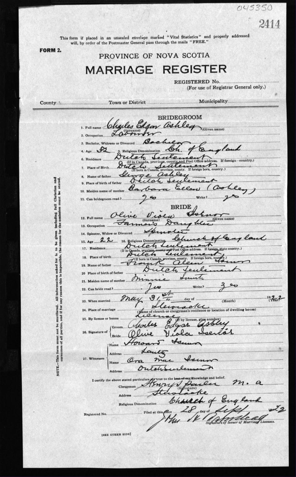 Registration: Year: 1922 number: 45350