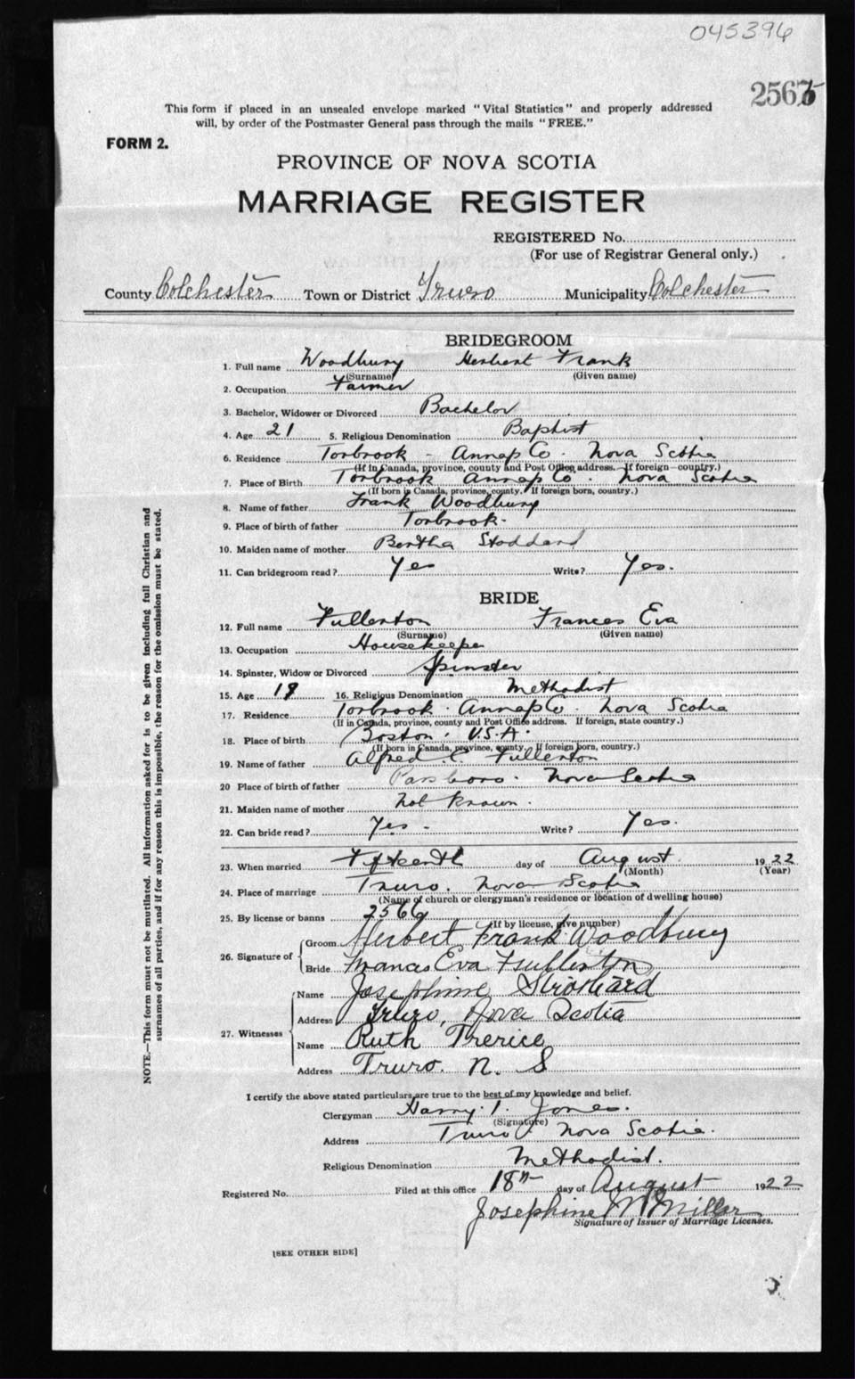 Registration: Year: 1922 number: 45396