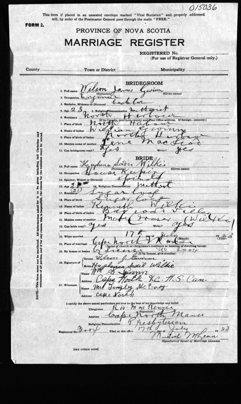 Registration: Year: 1923 number: 1536
