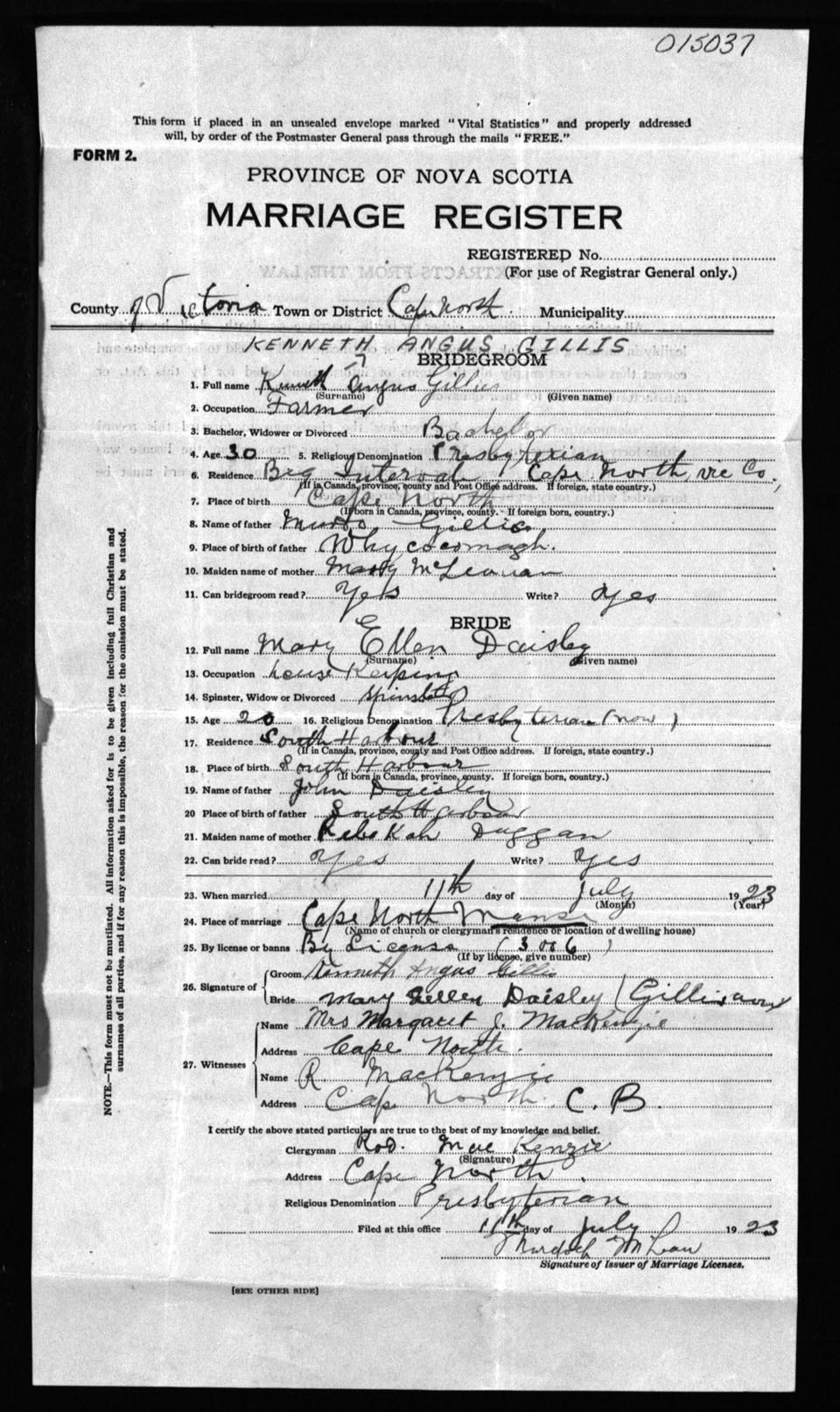 Registration: Year: 1923 number: 1537