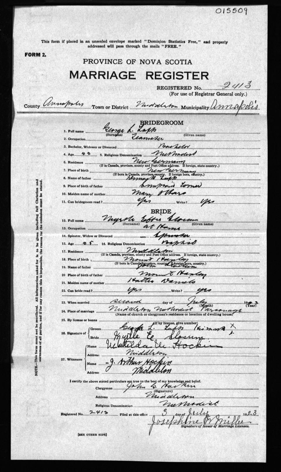 Registration: Year: 1923 number: 15509