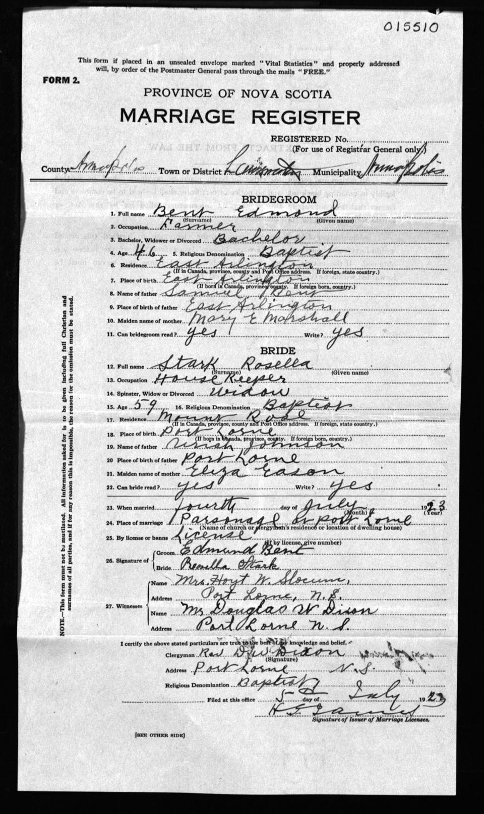 Registration: Year: 1923 number: 15510