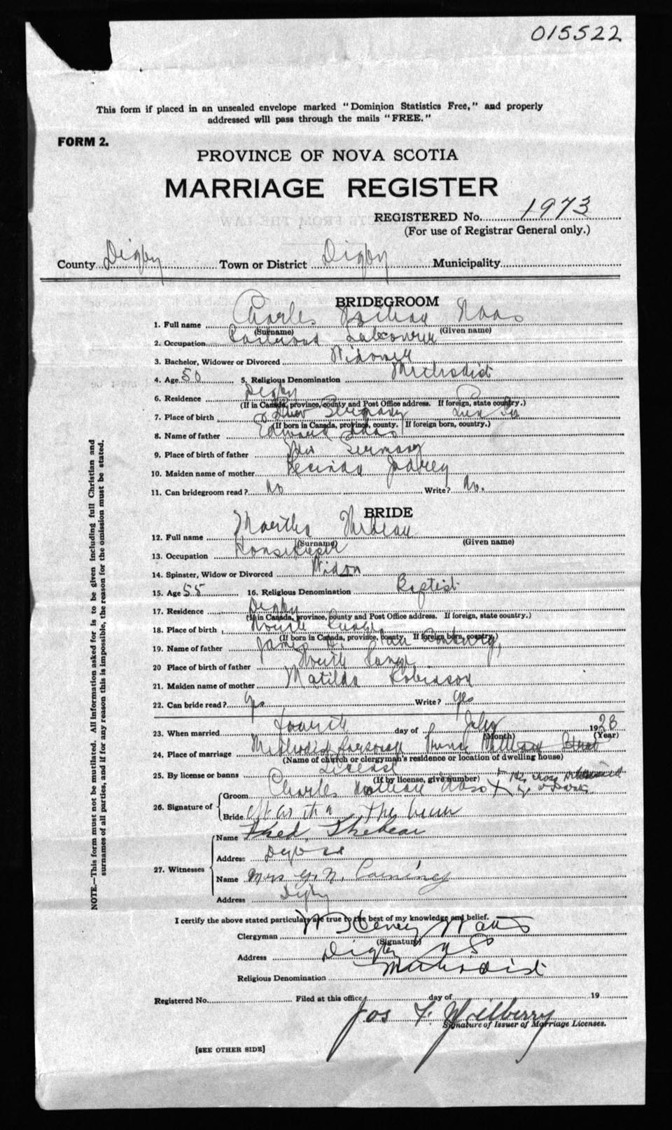 Registration: Year: 1923 number: 15522