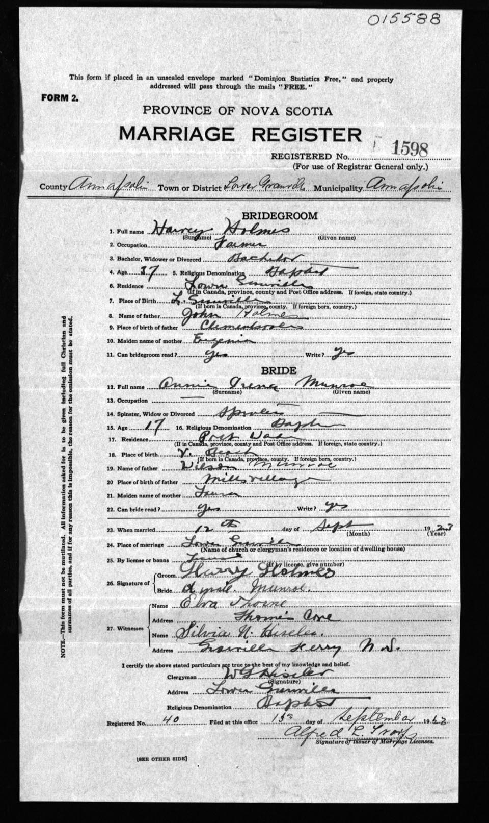 Registration: Year: 1923 number: 15588