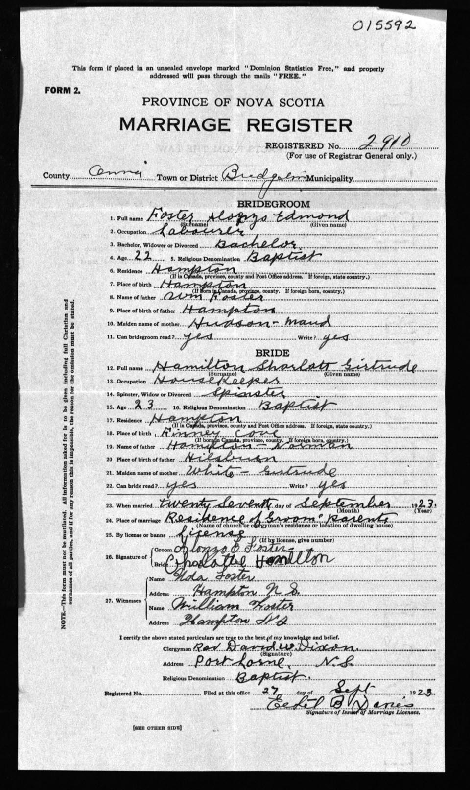 Registration: Year: 1923 number: 15592