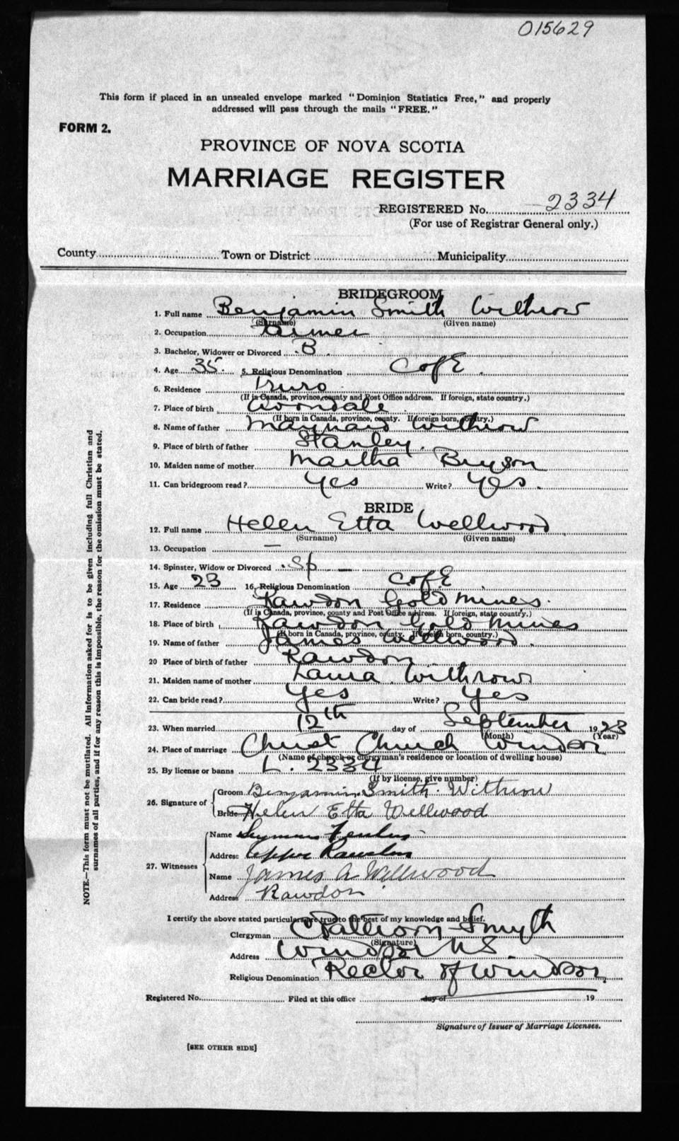 Registration: Year: 1923 number: 15629