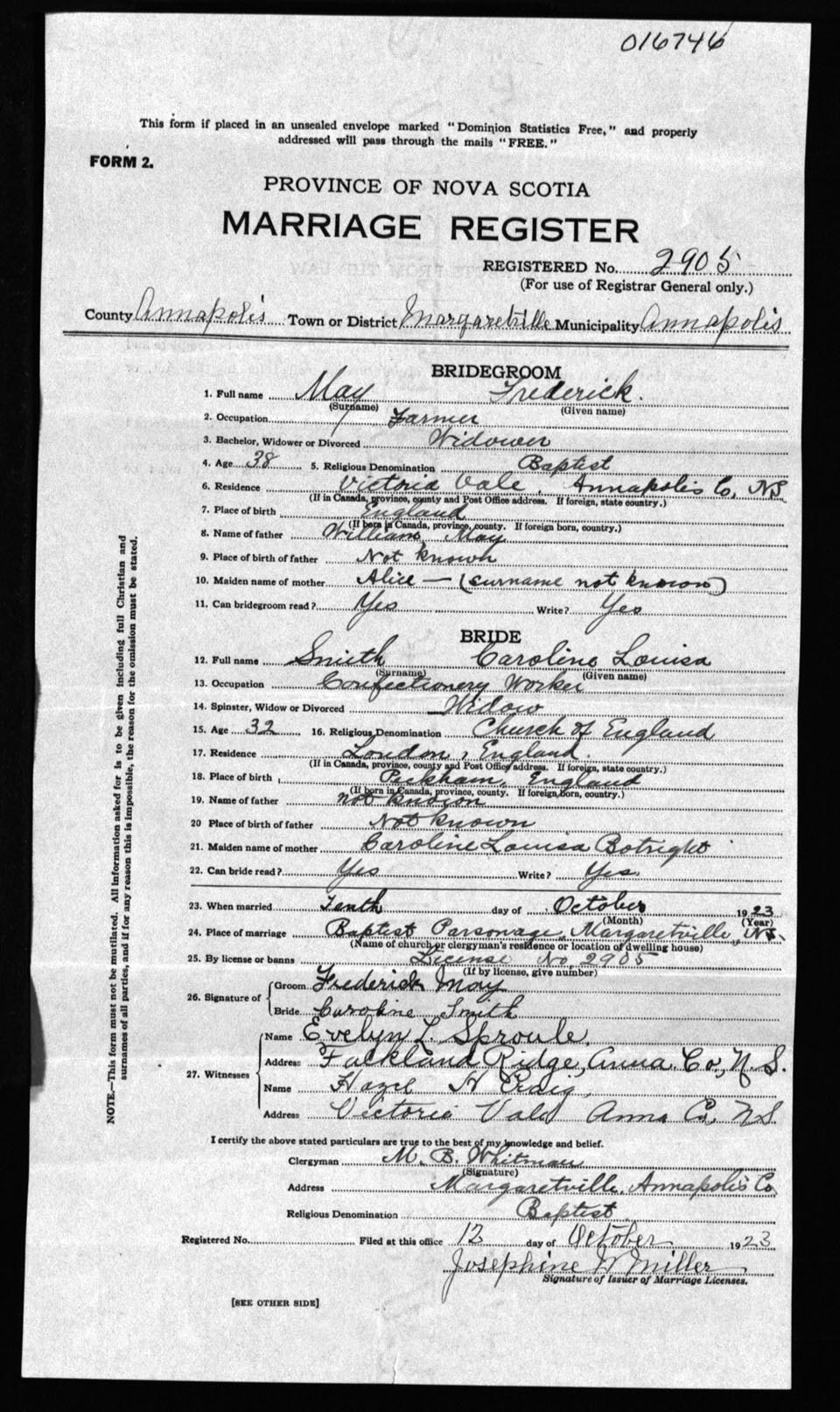 Registration: Year: 1923 number: 16746