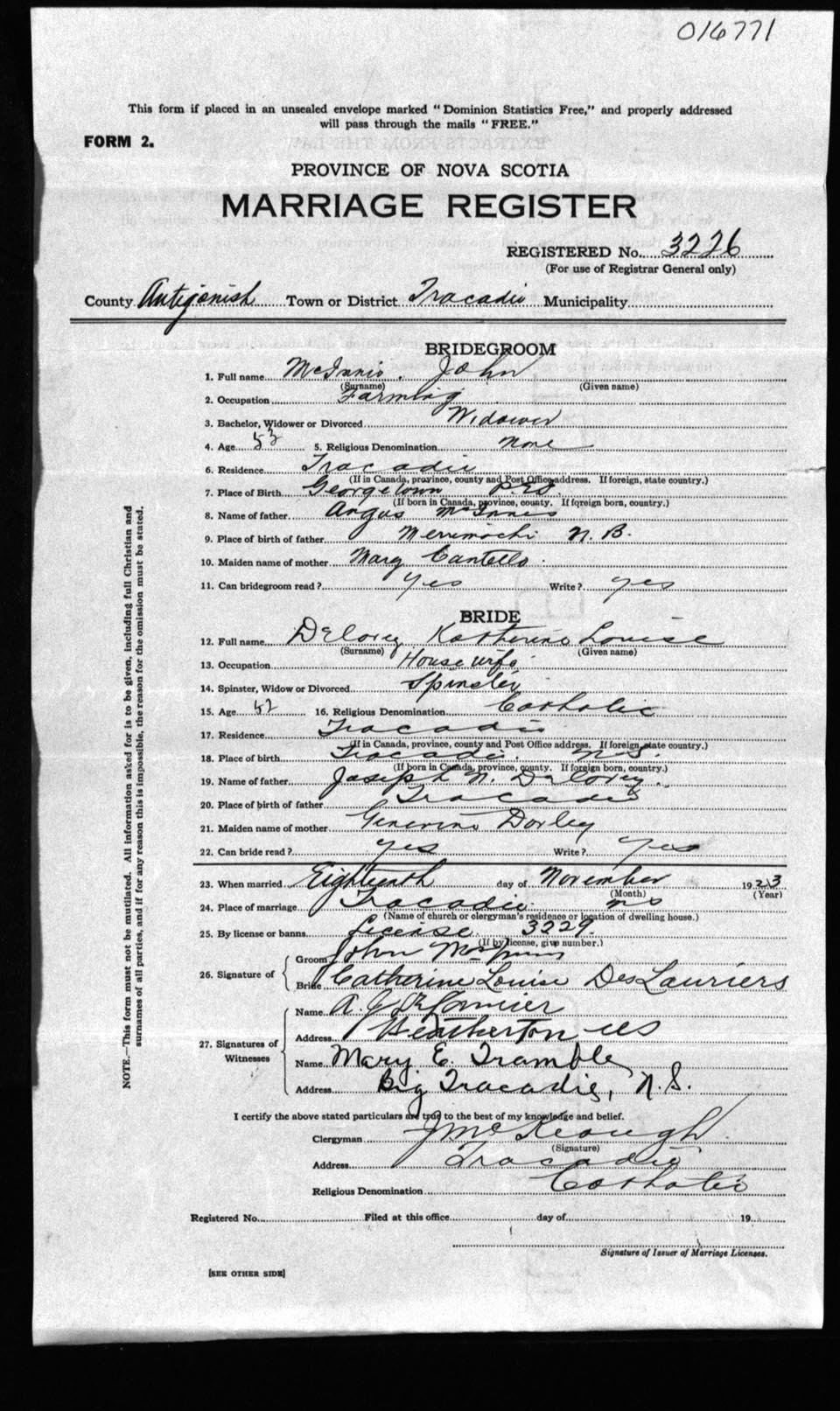 Registration: Year: 1923 number: 16771