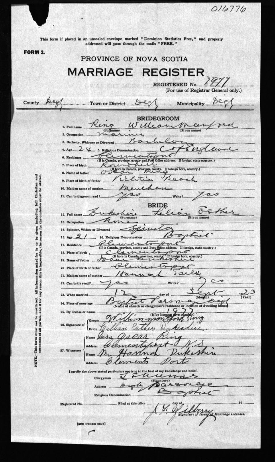 Registration: Year: 1923 number: 16776