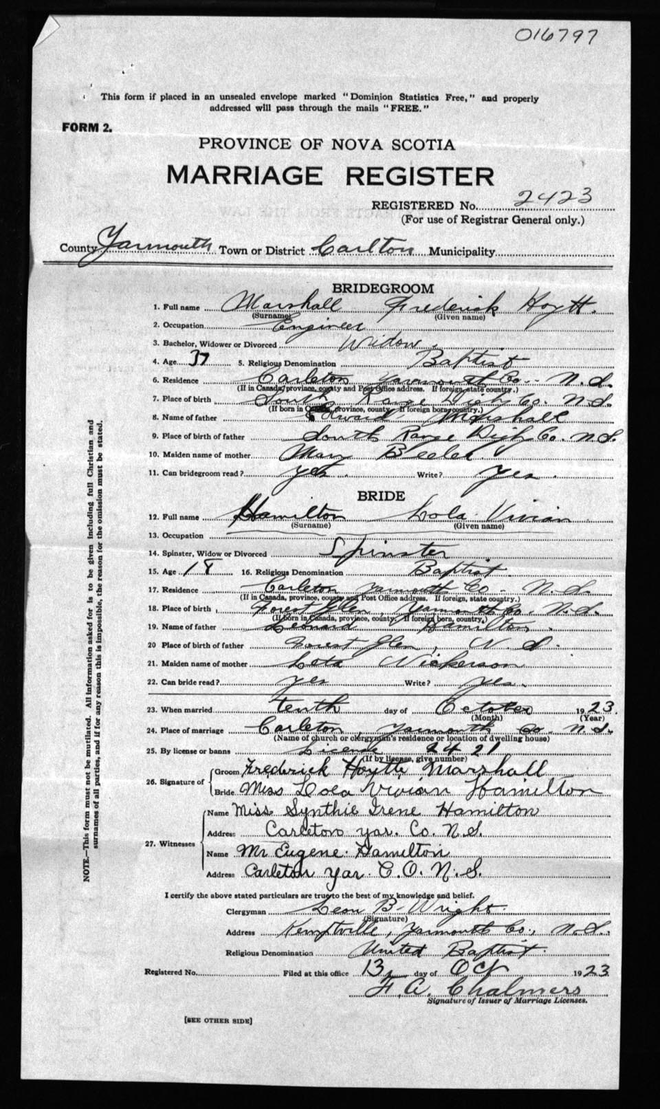 Registration: Year: 1923 number: 16797