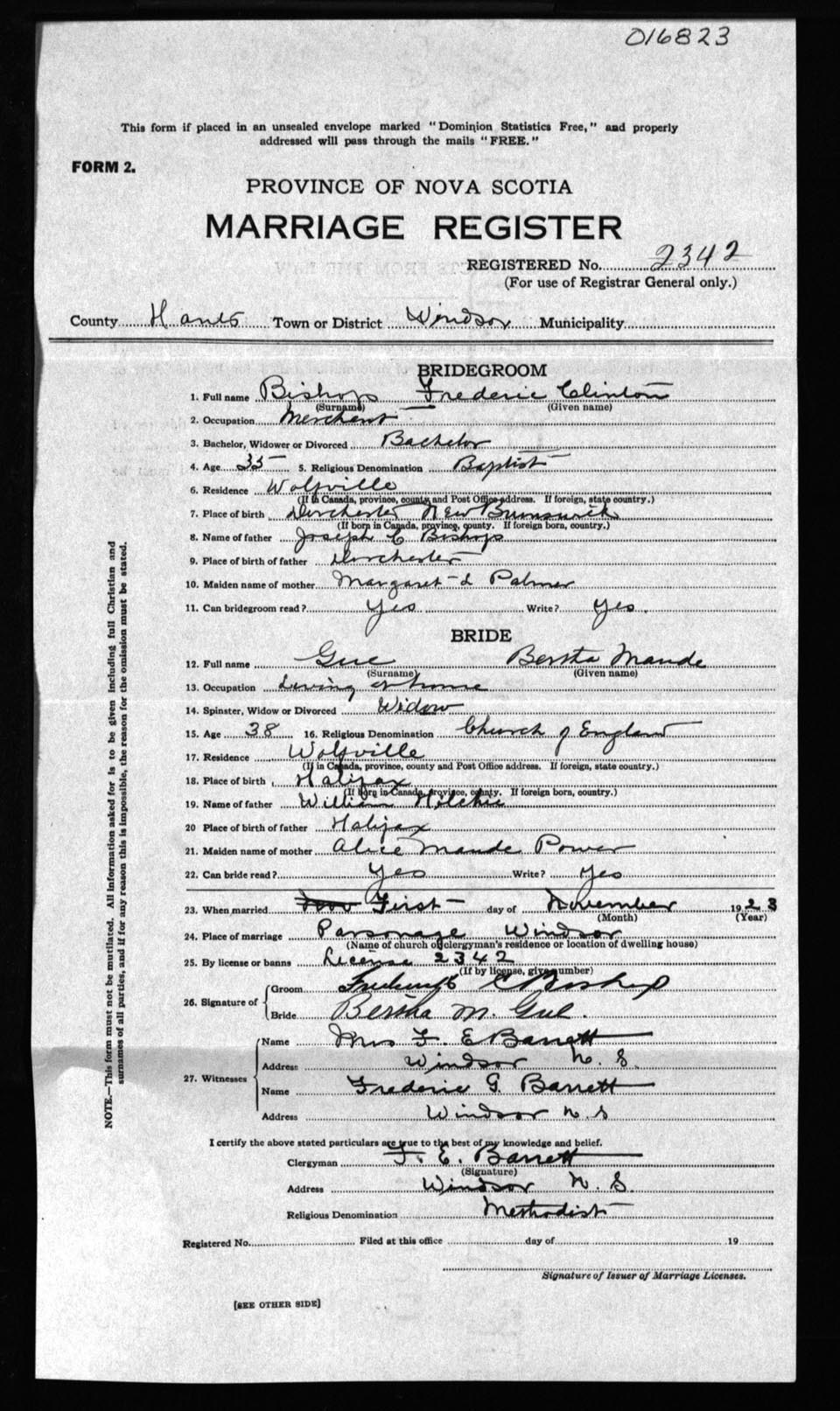 Registration: Year: 1923 number: 16823