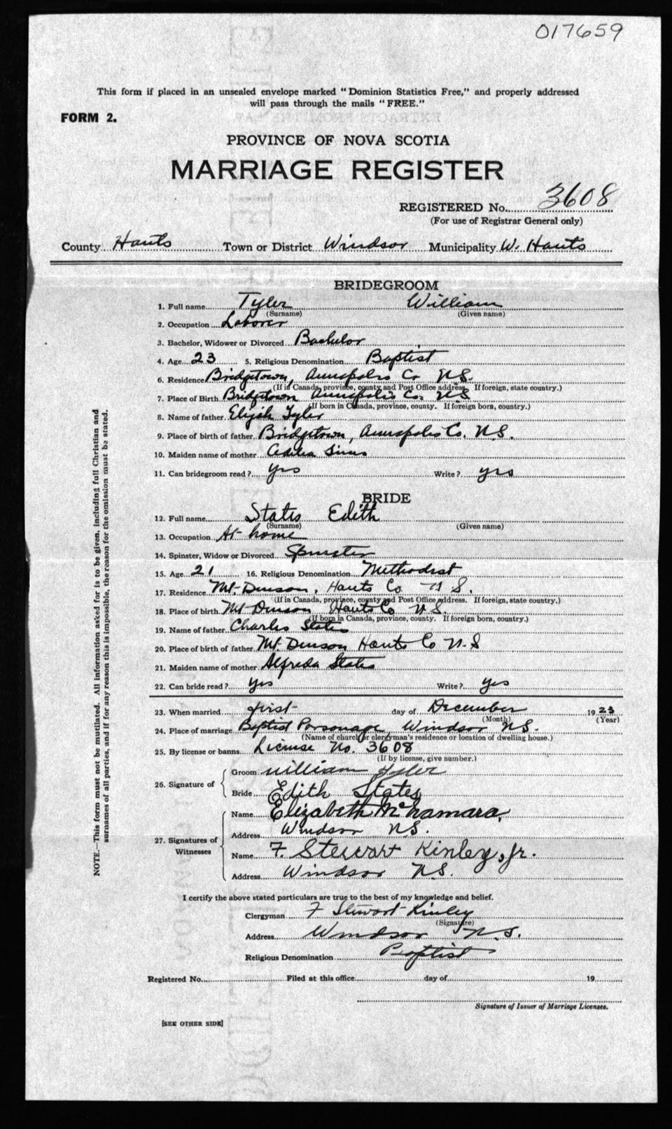 Registration: Year: 1923 number: 17659